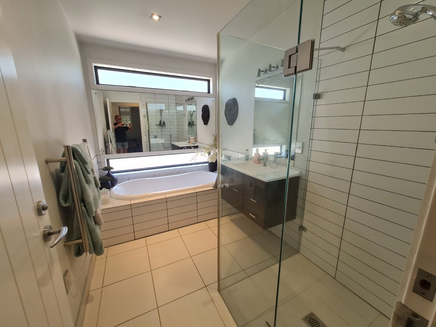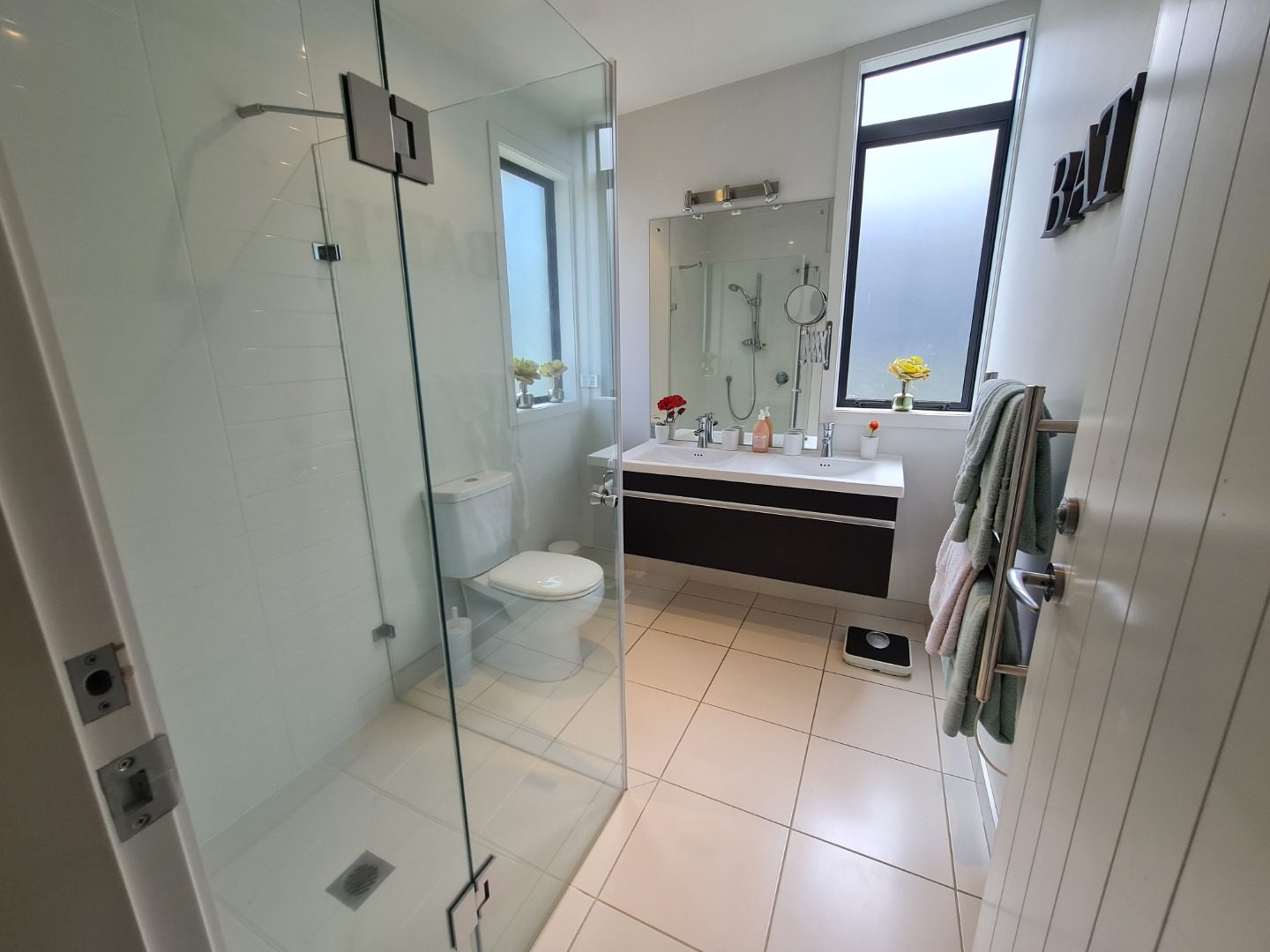 Two sleek bathrooms, including ensuite